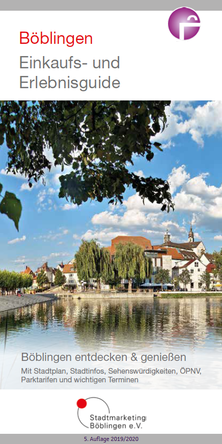 Mit diesem Einkaufs- und Erlebnisguide laden wir Sie dazu ein, die Stadt, ihren Einzelhandel und ihre Gastronomie, die Gewerbetreibenden und Dienstleister kennenzulernen und zu entdecken. Egal was Sie suchen, eine neue Brille, modische Kleidung, Elektro- und Haushaltsgeräte, einen Maler für Ihr neues Wohnzimmer oder einen Ort zum Erholen oder gut essen – in dieser Broschüre werden Sie fündig. Herzlich willkommen in Böblingen!
