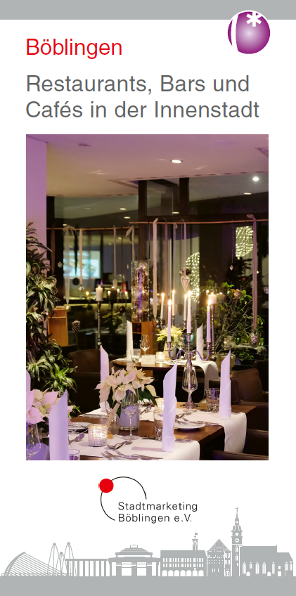 Wohin in der Böblinger Innenstadt, wenn der Magen knurrt? Oder Sie suchen ein bestimmtes Restaurant, eine bestimmte Geschmacksrichtung? Unsere Broschüre bietet einen kompakten Überblick über das vielseitige gastronomische Angebot in der Stadt - nach Rubriken getrennt. Der handliche Faltplan eignet sich auch hervorragend für die Jackentasche.