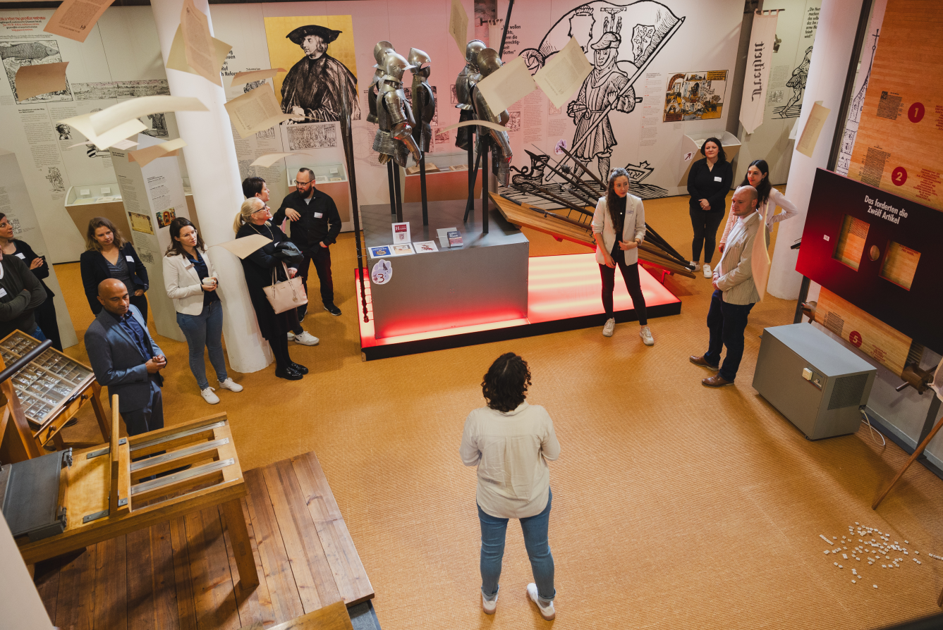 Zum dritten Mal haben das Stadtmarketing der Stadt Böblingen und die Wirtschaftsförderung Sindelfingen GmbH (WSG) die Touristikerinnen und Touristiker ihrer Städte zum Tourismusfrühstück am 25. April eingeladen. Den geeigneten Rahmen hierfür bildeten diesmal die Räumlichkeiten des Museums Zehntscheuer, das die Städtischen Galerie und das Deutsche Bauernkriegsmuseum Böblingen unter einem Dach beherbergt. Rund 25 Vertreterinnen und Vertreter aus Hotellerie, Gastronomie, Kultur und Freizeit folgten der Einladung in das Museum und tauschten Ideen und Erfahrungen in der Tourismusbranche aus.