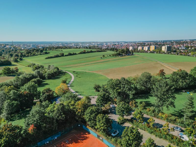 Gebührenfreier Stellplatz für 4 Wohnmobile (keine Wohnwagen) am südöstlichen Rand von Böblingen – mitten im Grünen! Felder, Wiesen, Wald und ein idyllischer Weiher laden zum Spazieren, Radfahren und Entspannen ein.