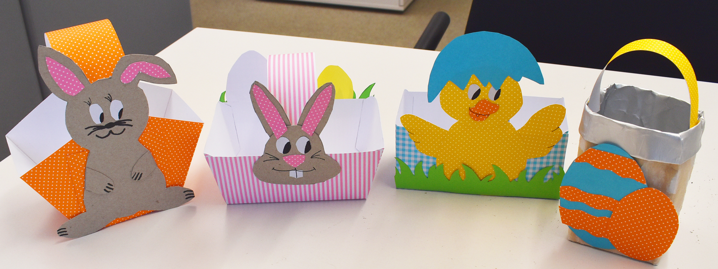 Gemeinsames BastelnAuf dieser Seite stehen verschiedene Bastelvorlagen für bunte Osterkörbchen zum Download zur Verfügung.